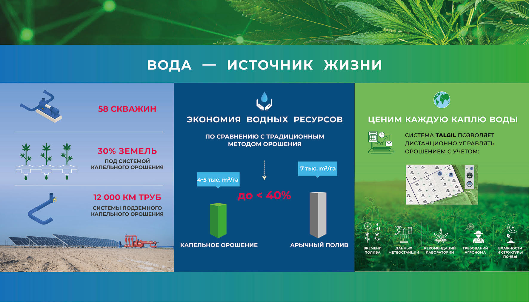 achieved through the underground drip irrigation system in the biotechnological